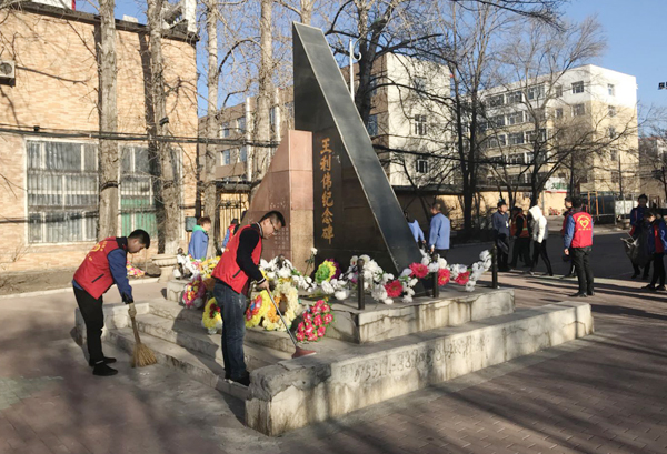 參加人員6:30到達王利偉紀(jì)念碑公園進行了掃墓活動,公司團委書記宋明林對英雄王利偉的光榮事跡進行了介紹,全體人員集體鞠躬悼念英雄。活動最后公司人員對整個公園的衛(wèi)生進行了清掃。